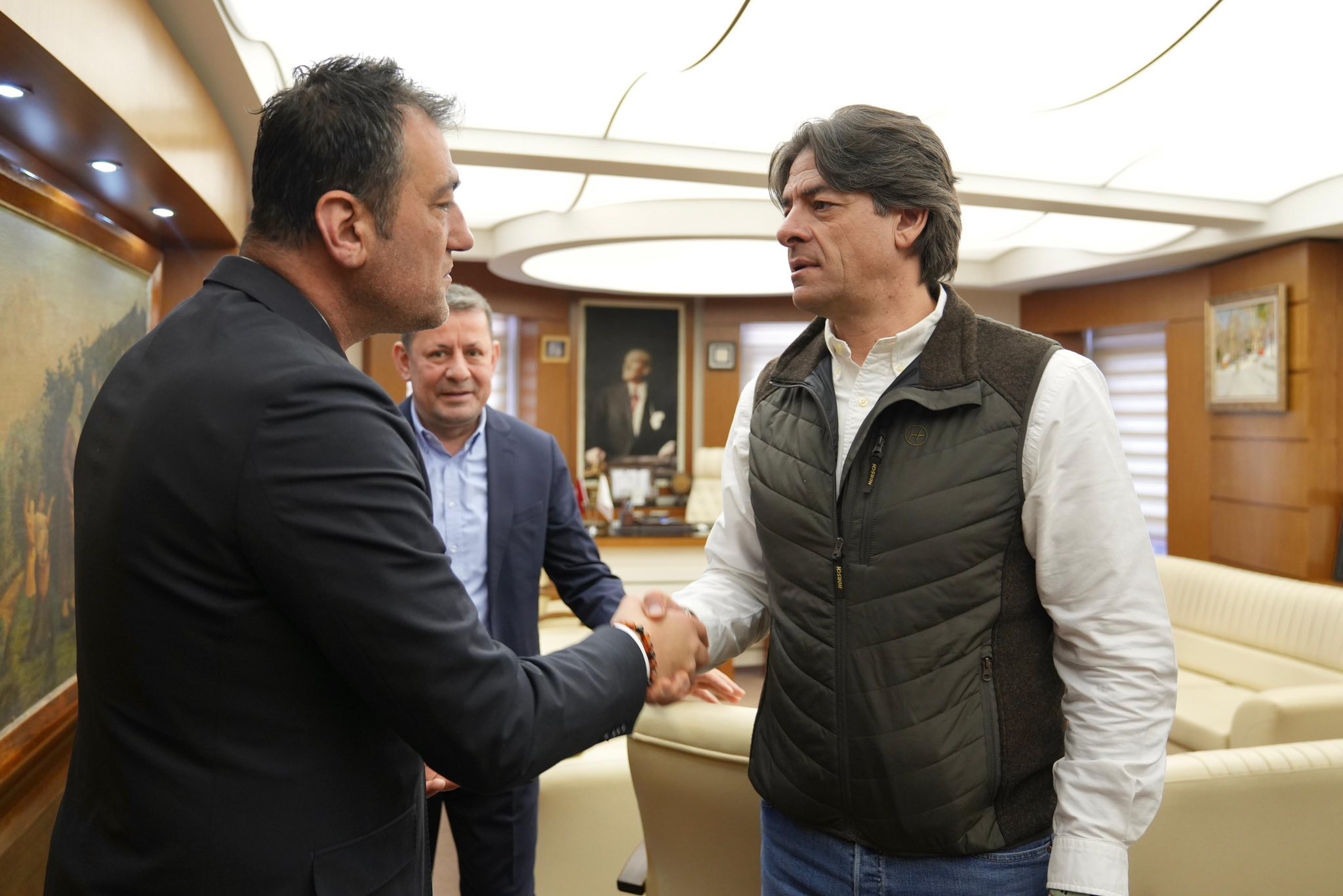 Çeşitli programlara katılmak üzere Giresun’a giden CHP Tarım ve Orman Politikaları Kurulu Başkanı Solakoğlu’nun Giresun Belediye Başkanı Köse’ye yönelik ziyaretinde; CHP Giresun İl Başkanı Gökhan Şenyürek, Merkez İlçe Başkanı Olcay Küçük, parti yöneticileri, Belediye Başkan Yardımcısı Mehmet Ali Akten ve Espiye Belediye Başkanı Erol Karadere’de yer aldı.